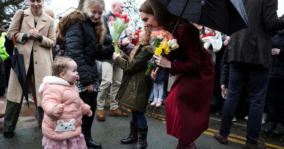 During a February 26 visit to Powys, with William, 44, Middleton paused mid-walkabout when two young boys challenged her to a quick round of rock, paper, scissors. The rain didn’t interrupt the exchange; if anything, it seemed to add to the charm of the moment. Middleton was seen jumping right in, laughing as she played along. “Let’s do it again. Rock, paper, scissors, shoot. Aw!” she said, as the first boy’s 'paper' beat the 'rock' she had made with her hand. She took the loss in stride, smiling as the children reacted. She then turned to the second boy, agreeing to three quick rounds. In the end, his 'rock' triumphed over her 'scissors.' Middleton appeared to congratulate him, clearly enjoying the exchange before moving further along the crowd. Spotting a little girl proudly holding a drawing of the Welsh flag, she waved warmly and said, “Nice to meet you.”