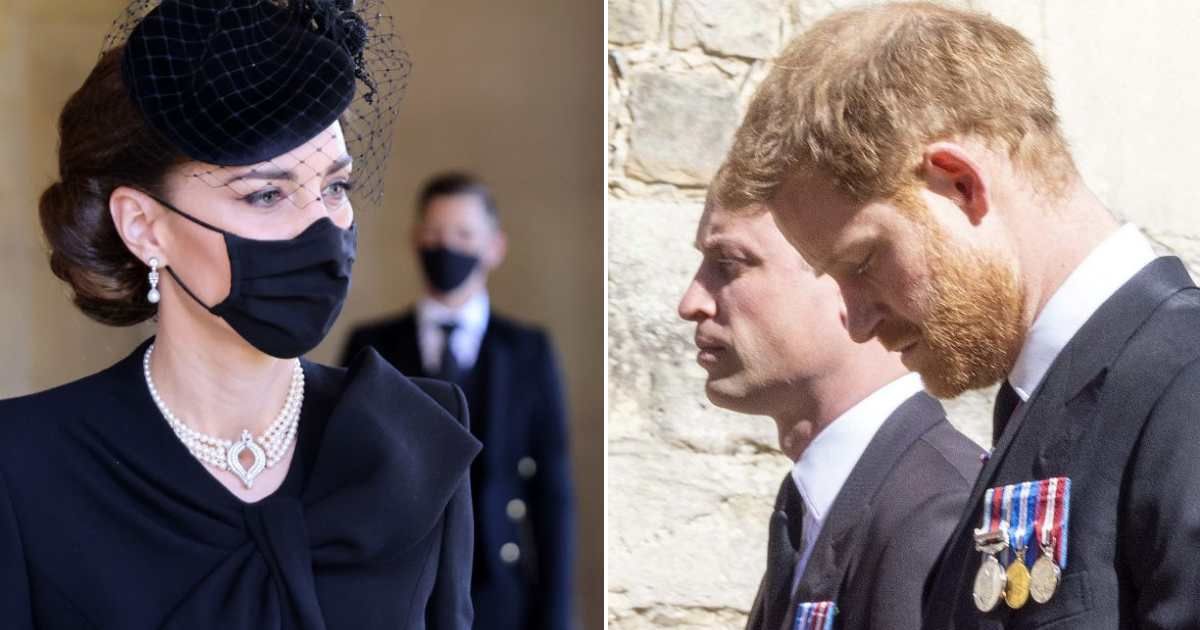 Princess Kate Caught on Camera Playing ‘Sheepdog’ Between Harry & William at Prince Philip’s Funeral